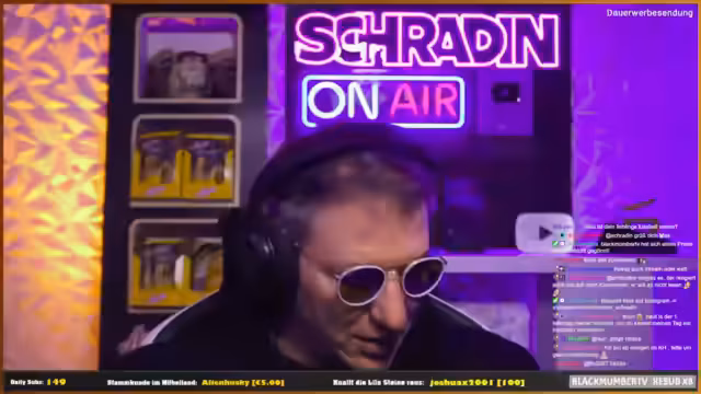 00:41:55Die zentrale Interaktion des Streams ist die "CARRY THE GLASS"-Challenge, bei der Schradin und Zarbex gegeneinander antreten. Die Challenge beinhaltet eine komplexe Regelung: Beleidigt einer von beiden den anderen mit einem bestimmten Thema, muss er fünf Subs an dessen Chat spenden. Speziell verboten sind Beleidigungen, die auf Körpergewicht von Schradin und auf die Mutter von Zarbex abzielen. Die Spannung steigt, da beide Streamer eine lange Geschichte gegenseitiger Provokationen mitbringen und die potenziellen Eskalationen erwartet werden.