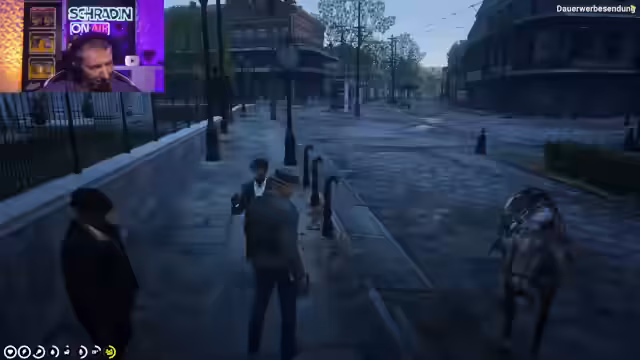 01:51:53Die Grafik im Red Dead Redemption RP ist aufgrund des fehlenden neuen PCs noch nicht optimal. Der Streamer fragt den Chat um Rat, wie er in der leeren Stadt ein Pferd bekommen und Kontakt zu anderen Spielern aufnehmen kann. Er erklärt, dass er einen sehr guten PC bekommt und es ein Gewinnspiel geben wird, sobald er ihn hat. Er erklärt, dass er den PC geschenkt bekommt, weil die Firma ihn supporten will. Er betont, dass er sich den PC auch selbst kaufen könnte, aber er anderen eine Freude machen möchte. Er ist in Saint-Denis und muss nach Blackwater. Er sucht verzweifelt nach einem Stall und einem Pferd.