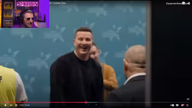 01:21:20Der Streamer teilt seine Eindrücke von der Comic-Con, wo er sich auf vier Fotos gefreut hatte und bereits eines, mit Elijah Wood, als absolutes Highlight betrachtet. Er beschreibt einen Adrenalinkick und einen Zustand, der ihm wie zu Hause vorkommt. Anschließend werden weitere Bilder mit Jonathan Frakes und Hailey besprochen und nach Thumbnail-Kandidaten gesucht. Ein kurzer Chat über Herr der Ringe und die Schauspieler, die nun das perfekte Alter für einen neuen Film hätten, folgt.