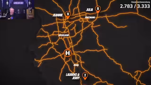 03:20:12Der Streamer plant einen Fahrerwechsel, um den Jägern zu entkommen. Er berichtet von der aktuellen Lage, dass sich eine Person in Frankfurt befindet und eine andere beim Yoga ist. Es werden Strategien besprochen, wie man sich fortbewegen kann und welche Routen man einschlagen sollte, um den Verfolgern zu entkommen.