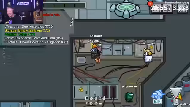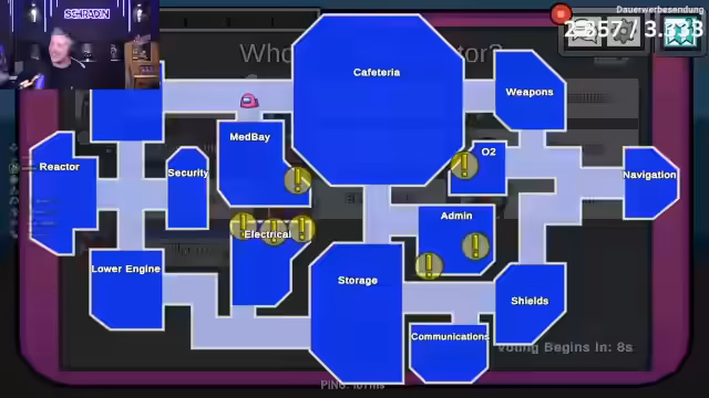 06:41:29Ein Crewmitglied wurde in Electrical ermordet und ein anderer Spieler berichtet über den Vorfall. Es gibt Verdächtige Aussagen und Alibis für mehrere Spieler. Ali wird verdächtigt, jedoch leugnet er die Tat. Ein Spieler behauptet, mit Ali zusammenzuarbeiten, während ein anderer bei der Untersuchung hilft. Die genauen Umstände des Todes sind noch unklar, und die Spieler debattieren über mögliche Schuldige und die gespielten Rollen im Spiel. Die Diskussion ist geprägt von Unsicherheit und Anschuldigungen.