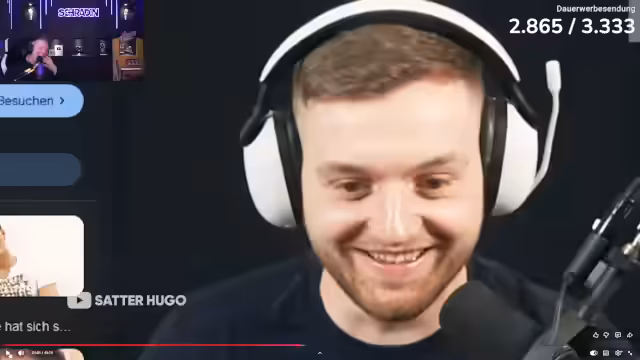 08:07:01Der Streamer reagiert auf verschiedene Clips, darunter ein Video von Mark G. Bauer, der sich in Amerika verändert zu haben scheint. Er diskutiert Hugo, der offenbar 'voll drin' ist, und die Vorbereitung auf einen Wettkampf. Am Ende der Sendung (um 22 Uhr) scheint eine Challenge mit Hugo bevorzustehen. Der Streamer erwähnt auch die Produktion von Clips für Santa Hugo und mögliche inszenierte Szenen.
