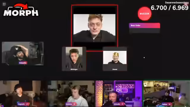 02:34:47Nach dem Quiz wechseln die Streamer zum Spiel 'Morph', bei dem eine KI Gesichter mischt und die Spieler die beiden darin enthaltenen Personen erraten müssen. Das Spiel erfordert schnelles Buzzern und genaues Sehen. Kandidaten wie Zabex glänzen durch schnelle Reflexe und korrekte Antworten, während andere Schwierigkeiten haben, die oft unklaren Gesichter zu identifizieren. Die KI wird als 'Kack-AI' und 'ungenau' kritisiert, was das Spiel zu einer Mischung aus Freude und Frustration macht.