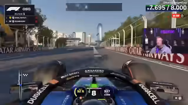 02:19:51Das Qualifying ist von Chaos und technischen Problemen geprägt. Der Streamer fühlt sich in enge Kurven gedrängt, vergleicht die Strecke mit Monaco und beschreibt, wie er überall andockt. Er verliert die Kontrolle über sein Auto, wahrscheinlich aufgrund einer Fehlbedienung, und stürzt auf den vierten Platz. Auch Eli stürzt in die Mauer. Der Streamer ist frustriert, merkt an, dass Eli zwei Sekunden schneller war und ein Unfall Punktabzüge nach sich ziehen könnte.