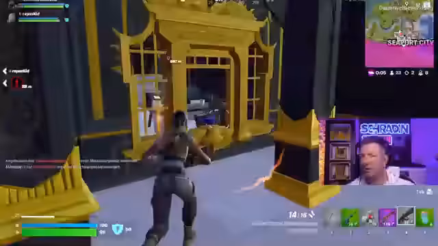 00:35:17Schradin und Reapers beginnen ihr erstes Fortnite-Spiel. Schradin gibt Anweisungen zum Waffenwechsel, Zielen und Ducken. Er erklärt den Unterschied zwischen Shotguns und Sturmgewehren und die Bedeutung von Waffenfarben (Weiß, Grün, Blau, Lila, Gold). Sie aktivieren versehentlich den Baumodus, beschließen aber, ihn in der nächsten Runde zu deaktivieren. Schradin weist Reapers an, einen Gegner zu eliminieren, was dieser erfolgreich tut. Sie diskutieren den bevorstehenden Freitagstermin und Schradin ermutigt Reapers, nicht zu verzweifeln. Schradin erklärt die Funktion von blauen Getränken zur Heilung und betont die Bedeutung, immer volles Leben zu haben. Sie einigen sich darauf, Masked Meadow als ihre "Hometown" zu betrachten und dort immer zu landen. Schradin plant, Reapers' Grafikeinstellungen zu optimieren. Er erklärt, wie ein optimales Inventar aussehen sollte: zwei Waffen (Shotgun und Sturmgewehr) und zwei Healsachen (Medikit und blaue Getränke). Sie looten Kisten und Gebäude, wobei Schradin Reapers auf das Summen der Kisten aufmerksam macht.