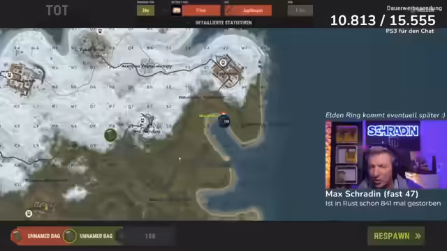 04:20:53Schradin beendet unerwartet seinen Rust-Stream, obwohl er erst vier Stunden aktiv war, und entschuldigt sich dafür. Er äußert, dass Rust nicht sein bevorzugtes Spiel sei und er sein Team im Stich lasse, da er das "Zugpferd" und der Leader des Teams sei. Knoss wird seinen Platz einnehmen. Er betont den Wunsch nach Entspannung und kündigt an, dass er kurz eine Pause macht. Er räumt ein, dass er erst wieder ins Spiel finden muss und es etwas dauern könnte, er es aber versuchen werde. Er erklärt, dass er aus dem Rust-Team aussteigt, weil er im Vergleich zu Monte, Zabex und Filo deutlich weniger Fortschritte mache und sich als Klotz am Bein fühle. Er sterbe ständig, verliere seine Sachen und fange immer wieder von vorne an. Da die anderen Teammitglieder keine Zeit hätten, ihm stundenlang alles zu erklären, ziehe er es vor, das Spiel erst einmal selbstständig zu lernen, beispielsweise durch YouTube-Tutorials. Er möchte dem Team nicht zur Last fallen und es eher runterziehen, da er sich im Spiel unsicher fühlt und von anderen Spielern getötet wird, ohne zu verstehen, was vor sich geht. Er möchte erst die Grundlagen erlernen, bevor er wieder ins Team einsteigt, um einen Mehrwert zu bieten.