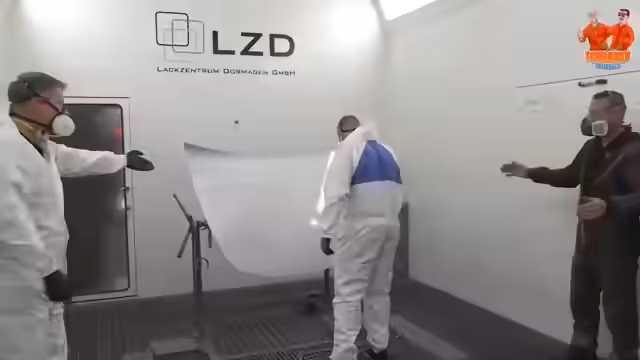 03:49:16Bevor es ins Lackierkabinen geht, findet eine Diskussion über die Farbauswahl statt. Zunächst wird über die Kosten eines kompletten Lacks, die im fünfstelligen Bereich liegen können, gesprochen. Anschließend erfolgt der Wechsel in die Lackierkabine, die wie eine Sauna beschrieben wird. Hier werden die ersten Schritte des Lackiervorgangs gezeigt, das Auftragen der Grundierung und die Vorbereitung für die eigentliche Farbschicht.
