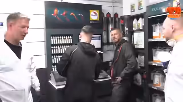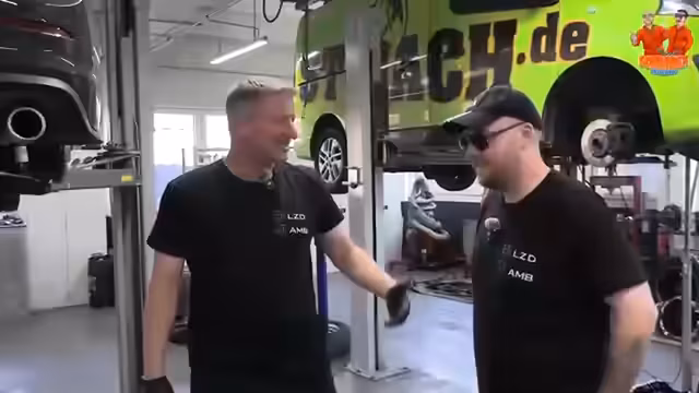 02:58:25Die Bewertung ist der letzte offizielle Arbeitsschritt. Anschließend verabschieden sich die Streamer von den Mitarbeitern der Werkstatt und den Zuschauern. Der Stream endet mit einer lockeren Stimmung, in der die anwesenden Personen gebeten werden, sich für ein Gruppenfoto in die Mitte zu stellen. Die abschließenden Grüße unterstreichen den positiven Abschluss des praktischen Streams in der KFZ-Werkstatt.