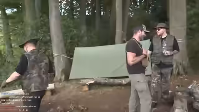 00:12:59Zarbx und Otto Bulletproof starten ein zweitägiges Survival-Event im Wald, das freitags um 13 Uhr beginnt und Sonntag endet. Ziel ist es, nur mit dem zu überleben, was sie finden. Es werden Challenges wie Feuer machen, Holz hacken und ein Shelter bauen durchgeführt. Streamer Zarbx und Otto, ein ehemaliger Soldat, werden von Schradin begleitet. Das gesamte Event wird als Live-Stream gezeigt. Die Stimmung ist zunächst humorvoll und voller Ironie, da sich beide als absolute Anfänger bezeichnen, während Otto sein Können betont.