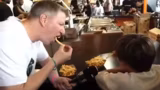 03:40:59Ein Highlight des Streams ist das spontane Bratwurst-Wettessen. Der Streamer fordert die Herausforderer auf, eine Bratwurst schneller zu essen als er, um eine PS5 zu gewinnen. Der erste Teilnehmer Ben scheitert, während Malik es schafft, die gesamte Bratwurst zu essen und damit zu gewinnen. Der Streamer zeigt sich fair und überreicht trotz seiner Niederlage den Preis an den jungen Gewinner. Diese_challenge erregte große Aufmerksamkeit unter den Zuschauern.