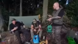 11:17:50Mit dem beginnenden Morgengrauen realisieren die Streamer die unangenehmen Konsequenzen der Nacht. Die Durchfallprobleme halten an, was den geplanten Tag stark beeinträchtigt. Die Strapazen des Vortages, das Holzhacken und die völlige Schlaflosigkeit, haben ihre Spuren hinterlassen. Einer der Streamer baut trotz geschwollenem Gesicht und Durchfall seine Hängematte um, was die absurde und schwierige Situation im Camp unterstreicht.
