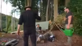 03:17:30Nachdem der Stamm durchtrennt ist, zeichnet sich eine massive Schwierigkeit ab: der Transport der schweren Holzstücke. Die anfängliche Euphorie über die Bewältigung der Holzfäller-Challenge weicht der schmerzhaften Realität. Die Beteiligten kämpfen nicht nur mit der körperlichen Überforderung, die zu Taubheitsgefühlen in den Armen führt, sondern auch mit logistischen Hürden. Der steile Hang und das enorme Gewicht machen den Transport unmöglich. Verärgerung und Verbitterung brechen sich Bahn, die anfängliche Teamdynamik kollidiert mit der unüberwindbaren physischen Herausforderung.