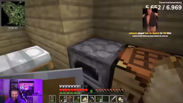02:17:37Während des Minecraft-Spiels hat der Streamer Interaktionen mit verschiedenen Spiel-Charakteren, einschließlich Händler und Bienen. Diese Begegnungen sind oft humorvoll und unvorhersehbar, mit verbalen Auseinandersetzungen. Der Streamer zeigt seine Frustration über das Verhalten einiger Charaktere im Spiel. Gleichzeitig konzentriert er sich auf die Herstellung von Werkzeugen und Ressourcen, um sein Lager zu erweitern und die Diamantsuche fortzusetzen. Chatmitglieder bieten Unterstützung und strategische Ratschläge während dieser Interaktionen.