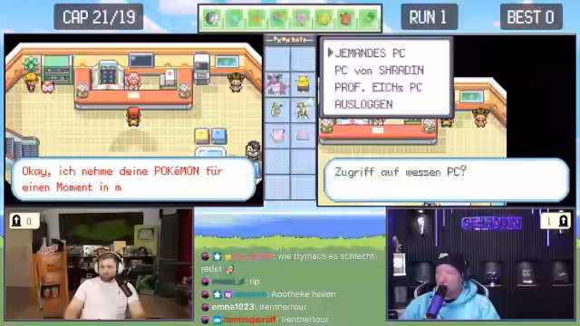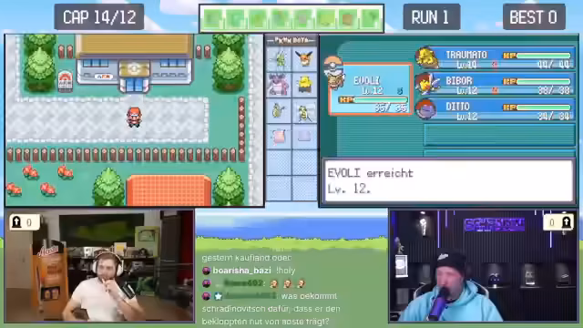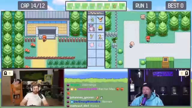 00:48:31Nach den anfänglichen technischen Problemen und nach einer langen Vorbereitungsphase beginnen die Streamer schließlich mit dem Pokémon-Spiel. Es wird die Spielversion Blattgrün auf dem Game Boy Advance gespielt. Die Grundregeln werden erklärt: Es ist ein sogenanntes Soul Link, bei dem die Pokémon der beiden Spieler miteinander verbunden sind. Stirbt ein Pokémon bei einem Spieler, stirbt das verlinkte Pokémon auch beim anderen. Das Ziel ist es, das Spiel gemeinsam durchzuspielen. Nachdem sie ihre Starter Pokémon erhalten haben, stellt der Streamer fest, dass es sich um kein Multiplayer-Spiel handelt, sondern jeder allein spielt, was zu einer humorvollen Enttäuschung führt. Das Spiel beginnt in der Stadt Alabastia.