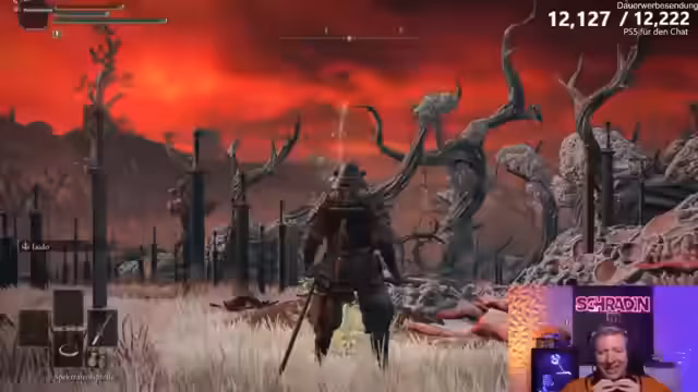 00:24:02Mit dem Code 'Schradin5' gibt es 5 Euro Rabatt auf den ersten Einkauf und 10% auf jeden weiteren Einkauf. Bei 12.222 Subs wird eine Playstation 5 für den Chat verlost. Es wird betont, dass man keinen der Zuschauer enttäuschen möchte. Der Streamer ist angespannt, muss aber optisch etwas hermachen. Der Streamer wartet auf den 'Pro', um mit dem Spiel zu starten und stimmt sich emotional darauf ein. Es wird ein Intro mit Helm gezeigt und der Streamer fragt sich, wie viel er jährlich für Kostüme ausgibt. Der 'Pro' wird in zehn Minuten mit dem Gameplay starten. Der Streamer kündigt an, dass er heute 12 Stunden streamen wird, aber keinen Sabaton, der auf Februar verschoben wird. Um sich auf das Spiel einzustimmen, wird ein kurzes Intro von Elden Ring auf YouTube angeschaut.