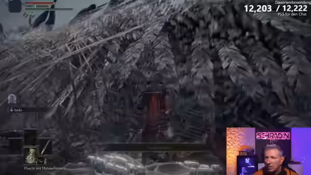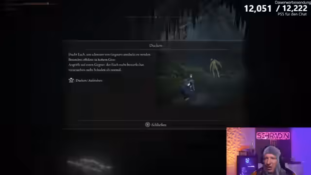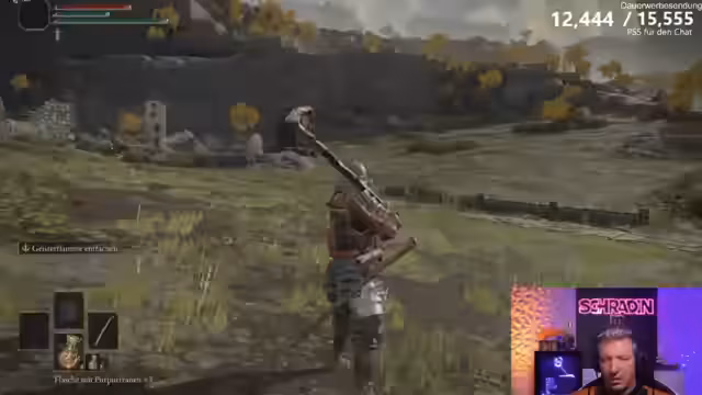 06:21:55Der Streamer erklärt, dass er noch 3.900 Follower braucht. Er gibt Anweisungen, wie man zu der obersten Gnade gelangt und den Aufzug benutzt. Er erklärt, dass es da oben Bäume gibt, unter denen sogar zwei sind. Er erklärt, dass sie jetzt eine Waffe holen und dann gegen Dings kämpfen können. Er gibt Anweisungen, wie man den Aufzug hochfährt. Er erklärt, dass es nicht bis Samstag fertig sein muss und sie auch im Februar noch dran ballern können. Er erklärt, dass er das Rust-Projekt und Elden Ring spielen wird. Er erklärt, dass er helfen wird, das Ding durchzuspielen, aber nicht bis Samstag schaffen wird. Er gibt Anweisungen, wie man geradeaus reitet und eine goldene Saat einsammelt. Er gibt Anweisungen, wie man zu einer Gnade gelangt und sie aktiviert. Er gibt Anweisungen, wie man ein Item aufhebt und zurückreitet. Er gibt Anweisungen, wie man die ganz große Treppe hochläuft.