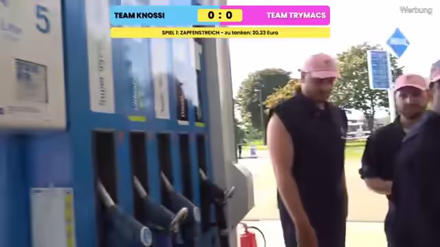 00:25:48Es findet eine Sicherheitsbelehrung statt, bei der auf das Verbot von Feuerzeugen und Rauchen hingewiesen wird. Das Gelände wird erkundet, wobei Pizzakartons und eine Bobbycar-Rennstrecke entdeckt werden. Es wird über mögliche Challenges spekuliert, darunter Staubsaugen und Geschicklichkeitsspiele. Die erste Challenge ist das Tanken: Die Teams müssen in Kanister tanken, ohne abzusetzen, und eine vorgegebene Summe möglichst genau erreichen. Die ersten Summen sind 9,99 Euro und 20,23 Euro. Team Clash Royale erzielt eine Differenz von 13 Cent, während das andere Team 2 Cent mehr tankt. In der zweiten Runde gibt es Schwierigkeiten, die vorgegebene Summe von 20,23 Euro zu erreichen. Adi, der noch nie getankt hat, erzielt ein gutes Ergebnis. Die Teams geben sich gegenseitig neue Zielbeträge vor, wobei strategische Überlegungen eine Rolle spielen.