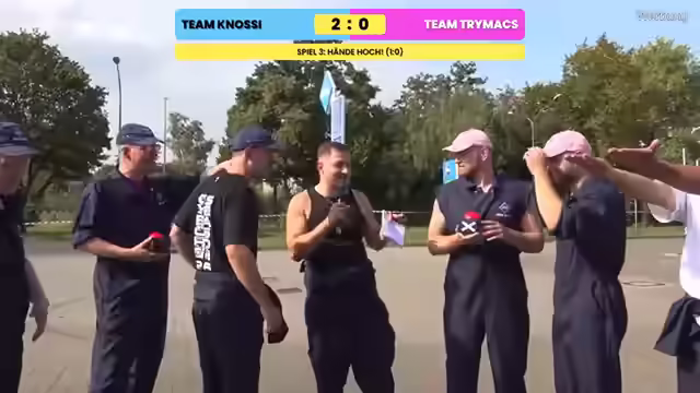 03:09:23Es wird über die Taktik gesprochen, die zum Sieg geführt hat, und ein Spieler gibt zu, sie vom Chat 'geklaut' zu haben. Ein Spieler versucht einen weiteren Wurf, jedoch ohne Erfolg. Es wird festgestellt, dass das Spiel ein gewisses Maß an Zufälligkeit beinhaltet. Es wird über die nächste Taktik diskutiert, da das Team nur noch einen Punkt hinten liegt. Die Gruppe bewegt sich zu einer Fotowand, die fälschlicherweise für ein weiteres Spiel gehalten wird. Es folgt ein Gespräch über einen Zeitungsartikel, in dem ein Spieler fälschlicherweise als 'unsympathisch' dargestellt wurde, wobei eine Verwechslung mit einer anderen Person vermutet wird. Es wird humorvoll über das Alter eines Teammitglieds diskutiert, wobei die Notwendigkeit einer Weiterentwicklung der Witze betont wird. Es wird angedeutet, dass im nächsten Jahr möglicherweise erneut 'Rentner'-Witze gemacht werden, was zu Überlegungen über eine mögliche Neuausrichtung führt. Schließlich wird das nächste Spiel angekündigt, das in einer Waschanlage stattfinden soll und 'Rollmisch' heißt.