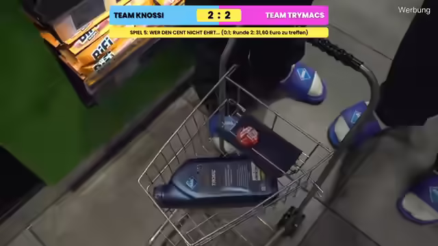 01:30:22Es beginnt eine neue Challenge in der klimatisierten Aral Tankstelle: Die Teams müssen für einen bestimmten Betrag einkaufen, und zwar auf den Cent genau. Der erste Betrag ist 20,23 Euro. Die Teams dürfen nicht die gleichen Produkte mehrmals verwenden. Die Zeit beginnt, und die Teams suchen nach passenden Artikeln. Es herrscht Chaos und Verwirrung, da die Teams Schwierigkeiten haben, den genauen Betrag zu erreichen. Ein Team ist die ganze Zeit über dem Zielbetrag. Es wird festgestellt, dass die Teams die Spielregeln noch nicht ganz verstanden haben. Es wird gerechnet und überlegt, welche Artikel gekauft werden sollen. Die Zeit läuft ab, und es herrscht Hektik. Ein Artikel fällt aus dem Wagen, wird aber wieder hineingelegt. Es wird der erste Einkaufswagen gescannt, und es stellt sich heraus, dass das Team zu viel bezahlt hat. Das andere Team ist näher am Zielbetrag, aber auch nicht genau. Es wird überlegt, welche Artikel ausgetauscht werden sollen, um den Betrag genauer zu erreichen. Es wird festgestellt, dass alle Beträge in der Tankstelle auf 9 Cent enden. Die Regeln werden nochmals angepasst, da die Teams so gut gespielt haben. Ein Team hat es sich sehr einfach gemacht, indem es ein Öl und einen Babybel gekauft hat. Es wird diskutiert, ob ein Wodka gekauft werden darf, aber dies wird abgelehnt, da es sich um eine Kindersendung handelt. Das Team hat sich verrechnet und liegt nun nur noch 1 Cent daneben. Sie gewinnen die Runde und führen nun mit 3-2. Es wird die Halbzeit eingeläutet, und es folgen noch fünf Spiele.