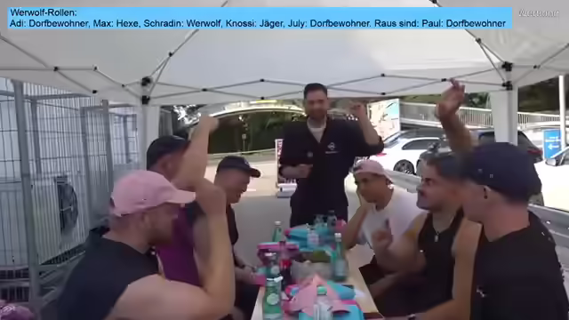 02:15:52Es wird beschlossen, eine Runde Werwolf zu spielen, wobei die Mods gebeten werden, die Rollen im Chat aufzuschreiben und anzupinnen. Die Lieblingspositionen im Werwolf-Spiel werden diskutiert, wobei die Hexe und die Reinigungskraft erwähnt werden. Die Reinigungskraft wird als Dorfbewohner beschrieben, der eine Person mit einem nassen Lappen reinigt. Es wird über die Rollenverteilung und die Spielregeln diskutiert, darunter ein Werwolf, eine Hexe und ein Jäger. Die erste Nacht beginnt, und der Werwolf wählt ein Opfer. Die Hexe erwacht und entscheidet, ob sie die Person wiederbelebt oder jemanden umbringt. Am Tag erwachen alle, bis auf Paul, der gestorben ist. Es folgt eine Diskussion darüber, wer der Werwolf sein könnte, wobei verschiedene Personen verdächtigt werden. Schließlich wird Schradin als Werwolf entlarvt. Eine weitere Runde Werwolf wird gestartet, wobei die gleichen Rollen wie zuvor verteilt werden. Es wird über die Möglichkeit einer Reinigungskraft und eines Wächters diskutiert.