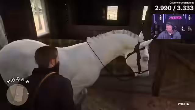 02:01:15Nach der stressigen Kutschen-Mission macht der Streamer eine Pause, um Arthur Morgan zu pflegen. Er rasiert sich und zieht sich um, bevor er sich der nächsten Mission zuwendet. Er plant, ein gutes Pferd zu zähmen und reitet nach Saint Denis. Während der Fahrt kommt es zu einer Konfrontation, bei der Arthur geschossen wird. Dies führt zu einer Diskussion im Chat über die Steuerung und die Schwierigkeiten des Spiels mit Tastatur und Maus.