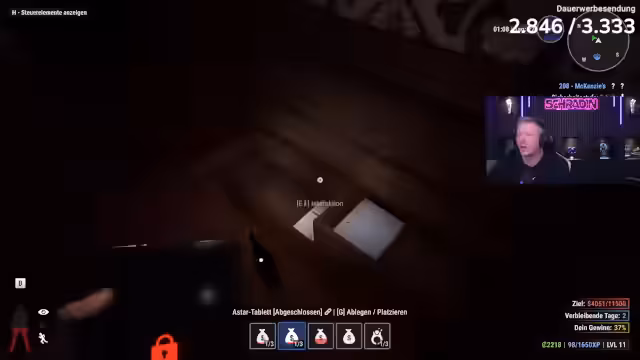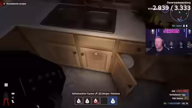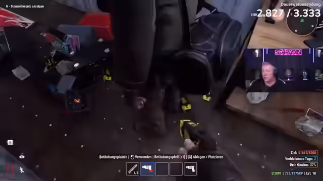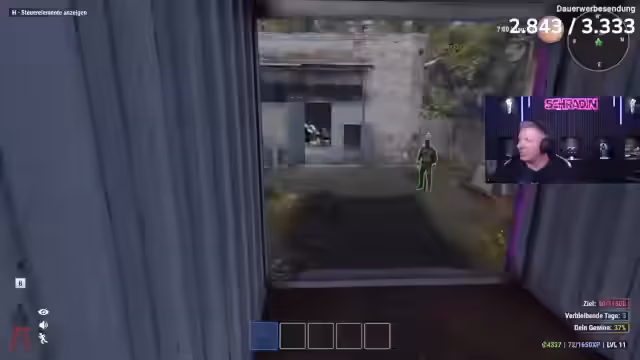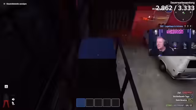 06:38:16Der Stream beginnt mit der koordinierten Durchführung eines Raubzugs in einer Lagerhalle. Die Protagonisten agieren als Team, um Wachen zu eliminieren und Beute sicherzustellen. Es kommt zu Missverständnissen und Verzögerungen in der Kommunikation, was zu kritischen Situationen führt. Nachdem alle Wachen ausgeschaltet sind, beginnt die systematische Plünderung der Boxen und Schränke, um wertvolle Gegenstände zu sammeln. Das Ziel ist es, die Halle vollständig auszuraumen und anschließend die Tankstelle zu überfallen, um den Profit zu maximieren. Ein Motorroller wird als Fluchtmittel identifiziert und muss sichergestellt werden.