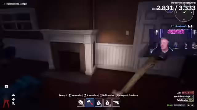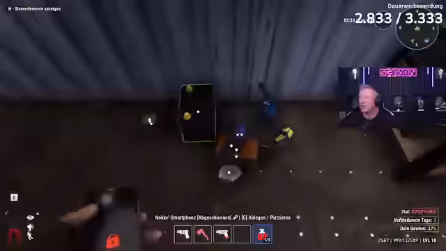 04:10:05Ein späterer Versuch, ein Objekt zu plündern, eskaliert. Der gefesselte Bewachter wacht auf, was zu einem chaotischen Fluchtmanöver führt. Der Streamer ist gefangen und muss aus einem Fenster springen. Der Druck steigt, als die Polizei eintrifft und der Streamer tödlich getroffen wird, was das Projekt vorzeitig beendet.