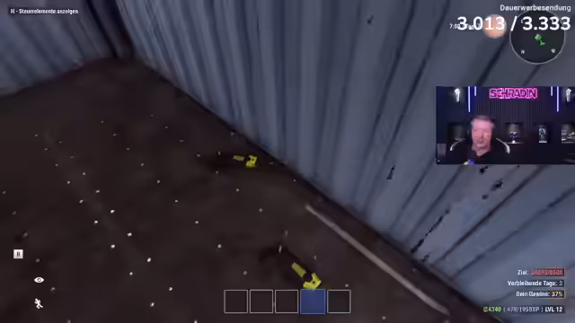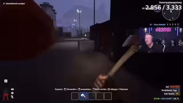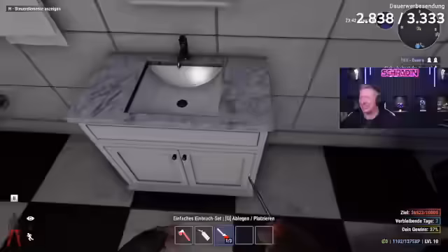 03:21:22Der Stream beginnt mit der Planung eines Einbruchs in einen Zugcontainer. Ziel ist es, Werkzeuge zu finden, um die Tür zu öffnen, und anschließend den gefesselten Insassen auszurauben. Es wird ein Einbruch-Set, Bargeld und ein Zivilschutz-Kit gefunden. Doch der Einsatz endet abrupt, als die Polizei gerufen wird und der Streamer bei der Flucht erschlagen wird, was zum Spielabbruch führt. Zivilschutz-Kit und anderer Plunder sind wichtige Funde, die später für den weiteren Verlauf benötigt werden.