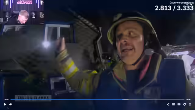 01:06:57Es wird eine Vorstellung des Reaktionsthemas Feuerwehr vorgenommen. Der Streamer berichtet von einem bei ihm durchgeführten Belastungs-EKG, das sehr gut ausgefallen sei, erwähnt jedoch auch den Rat, mit dem Vapen aufzuhören. Er wendet sich an seinen Cutter und wirft ihm vor, ihn in einem Clip unvorteilhaft dargestellt zu haben. Er äußert sich anschließend über den Geburtstag von Laura von DNA, den er wegen privater Termine nicht im Stream feiern kann. Darüber hinaus wirft er einem Chat-User vor, ein Bild von Taunusblitz gepostet zu haben, das ihn sehr alt aussehen lasse, und fordert das Kompetenz-Team auf, dies zu entfernen.