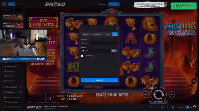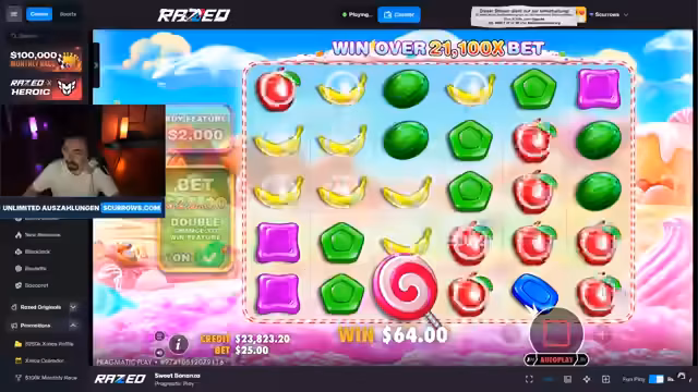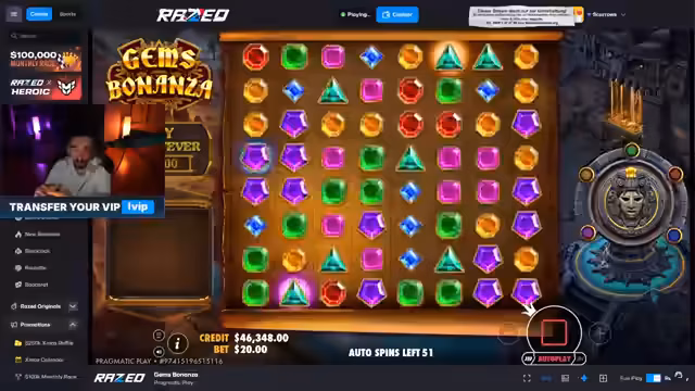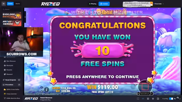 01:08:29Der Streamer spielt verschiedene Casino-Spiele und erleidet erhebliche Verluste, darüber 2400 Dollar in einem Spiel, ohne Freispiele zu erhalten. Er interagiert mit dem Zuschauer Bazzi, diskutiert über Spielstrategien und die Wahrscheinlichkeit von Freispielen. Es kommt zu einer Auseinandersetzung über Spielpraktiken, bei der der Streamer seine Frustration über die Auszahlungen und die Unwahrscheinlichkeit großer Gewinne äußert.