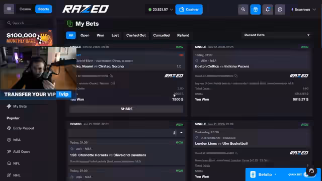 00:00:27Der Stream konzentriert sich stark auf Sportwetten, insbesondere auf NBA-Playoffs. Der Streamer betont, dass seine Analysen, die im Discord für Nutzer der Seite Skrill.com verfügbar sind, sehr erfolgreich waren. Er gibt mehrere Beispiele von erfolgreichen Wetten, darunter eine NBA-Wette von 5.000 Dollar mit einer Quote von 2,6 auf Osaka im Tennisspiel, die gewonnen wurde. Es wird eine hohe Trefferquote von 68 Prozent in der letzten NBA-Saison erwähnt und eine positive Bilanz für die aktuelle Saison vermeldet. Der Streamer zeigt seinen Gewinnverlauf und betont, dass er seine gesamten Verluste des Vortages durch diese Gewinne zurückgeholt hat.