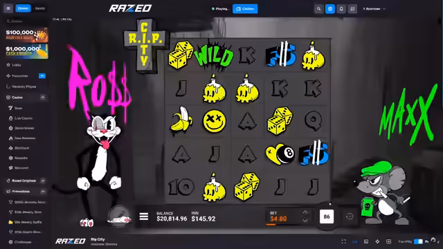 00:03:33Nach technischen Einrichtungsproblemen beginnt der Streamer mit dem Spielen von Rip City. Er äußert eine Vorliebe für das Spielen ohne Hintergrundmusik und legt Wert auf einen kontrollierten Spielsstil. Das Ziel ist, mindestens einen Max-Win zu erzielen, wobei spezielle Symbole wie Scatter und hohe Multiplikatoren im Fokus stehen. Der Streamer testet verschiedene Einsätze und wartet auf lukrative Bonusrunden.
