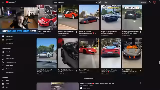 00:01:23Zu Beginn des Streams verkündet der Streamer, dass er sich einen Ferrari F8 Spider kaufen wird. Er berichtet, dass er dies mit seiner Mutter bespricht und sich gegen die klassische rote Farbe für ein matt-schwarzes Exemplar mit gelben Bremssätteln und Nähten entscheidet, um aus der Masse herauszustechen. Er zeigt sich aufgeregt und unsicher, ob diese matte Optik vom Werk verfügbar ist, und erwägt, das Auto gegebenenfalls folieren zu lassen. Er betont, dass dies seine letzte große Anschaffung sei.