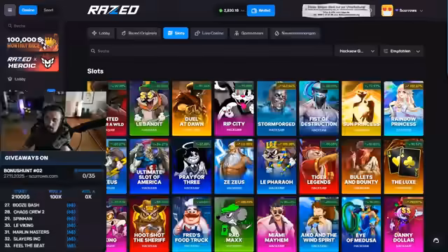 02:27:50Die Bonus-Jagd findet ihr Ende, und der Streamer zieht eine beeindruckende Bilanz: Aus einem Startguthaben von 21.000 Dollar wurden 56.795 Dollar generiert. Er kündigt eine Verlosung an, bei der 50 Dollar an mehrere Zuschauer vergeben werden, die das Video vollständig angesehen, geliked und kommentiert haben. Diese Aktion richtet sich exklusiv an Nutzer von scurrows.com, da er betont, dass diese Plattform das 'allerbeste Produkt' unter allen Casino-Streamern bietet. Er verabschiedet sich vorübergehend, um eine kurze Pause einzulegen, und verspricht, dass der Stream danach fortgesetzt wird. Er bekräftigt, dass die Slots an diesem Tag 'sehr, sehr krass gezahlt' haben.