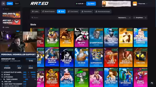 01:40:19Die Bonus-Hand erreicht einen beeindruckenden Zwischenstand von 11.000 Dollar bei über 30 noch offenen Freispielen, was die Erwartung weckt, dass die Startbalance definitiv zurückgewonnen wird. Selbst bei weniger erfolgreichen Spielen wie Tiger Legend, das 359 Dollar einbringt, bleibt die Stimmung positiv. Ein Highlight ist Deluxe, wo Super-Freispiele einen Gewinn von 3.000 Dollar erzielen, was als 'sehr strong' und 'geil' gefeiert wird. Die Gesamtbalance steigt auf 14.700 Dollar. Obwohl einige Spiele wie 'The Dead' oder 'Lezois' nur geringe Gewinne abwerfen, kompensieren andere Slots dies. Besonders hervorzuheben ist ein Spiel, das über 2.500 Dollar einbringt, mit mehreren 100x und sogar 400x Hits. Der Streamer ist begeistert von der 'krassen Bonus-Hand' und der konstanten Performance der Spiele.