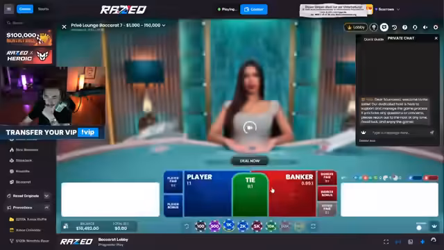 01:45:24Der Streamer spielt intensiv Baccarat mit hohen Einsätzen und reagiert emotional auf die Ergebnisse. Er diskutiert Strategien wie das Setzen auf Player oder Banker und analysiert die gezogenen Karten. Besonders frustriert ist er darüber, dass die Bank häufig mit einer 9 startet, was das Gewinnen erschwert. Trotz hoher Verluste kämpft er sich zurück und gewinnt durch 2,65-fache Auszahlungen bei erfolgreichen Player-Wetten. Zeitweise gewinnt er 14 Mal hintereinander, was ihn aufgrund reduzierter Einsätze dennoch unzufrieden zurücklässt.