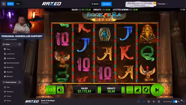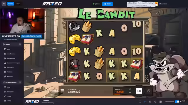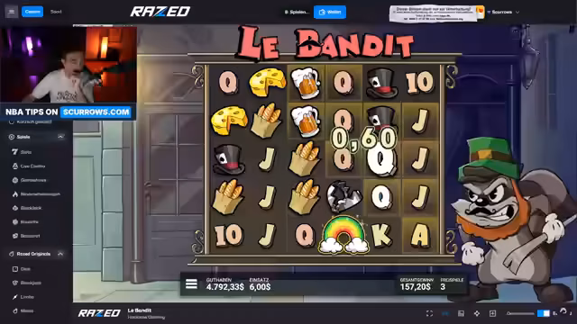 00:00:40Der Stream beginnt pünktlich um 15 Uhr mit einem Fokus auf Casino-Spiele, insbesondere das Spiel Libandit. Der Streamer nutzt direkt seinen täglichen Bonus auf der Plattform scurrows.com und erwähnt den Gewinn bei drei von vier NBA-Spielen des Vortags, bei dem nur ein Punkt im letzten Spiel gefehlt hätte. Er kündigt zudem an, dass die EL-Casino-Streams diesen Sonntag stattfinden werden, möglicherweise mit einem Special Guest.