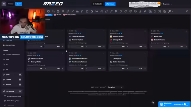 05:01:54Der Streamer leitet die Community auf scurrows.com weiter, wo es kostenlos Tipps für diverse Sportarten wie NBA und Counter-Strike gibt. Er kündigt an, dass in der Nacht um 23 Uhr weitere NBA-Spiele folgen werden und hebt die VIP-Transfer-Möglichkeiten für die User hervor. Eine Zuschauerin fragt nach dem Bonus, und der Streamer erklärt, dass dieser aktiviert werden muss, sobald man eine Wette platziert hat, und weist auf die five-tägige Frist zur Nutzung des Bonusguthabens hin.