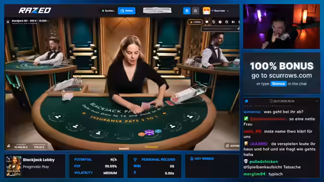 00:25:02Der Streamer beschreibt sein Leben als anspruchsvoll, da er sich ständig wiederholen und den Zuschauern versichern muss, dass er mit echtem Geld spielt. Er muss täglich darauf achten, mit einem Gewinn von 20.000 bis 40.000 Euro aus dem Stream zu gehen, was nicht immer einfach ist. Er leitet nicht nur 17 Mitarbeiter, sondern auch etwa 400 Streamer auf seinem Projekt und die gesamte Spielerschaft, was ihn zu einem „Großunternehmer“ macht. Während einer Blackjack-Session verliert er zunächst viel Geld, schafft es aber durch Sidebets und eine glückliche Runde, seine Verluste wieder auszugleichen und sogar in den Profit zu kommen. Er äußert sich frustriert über die hohen Gewinne der Bank und die Schwierigkeit, im Blackjack zu gewinnen. Trotzdem bleibt er optimistisch und motiviert, weiterzuspielen. Er erwähnt, dass die Champions-League-Tipps auf scurrows.com und im Discord gepostet wurden und dass er die Aufstellungen der Teams genau prüfen wird, um Fehler wie bei Manchester City zu vermeiden. Er kündigt an, dass sein IAL-Setup angekommen ist, was bedeutet, dass es bald Casino-Streams aus echten Casinos geben wird.