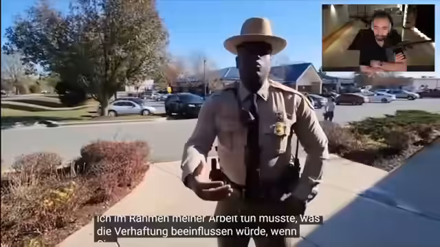 01:15:31Ein Gespräch mit einem Trooper beginnt, der auf seine Rechte pocht, sich nicht ausweisen zu müssen, da er keine Gesetze gebrochen habe. Er erklärt, dass er als unabhängiger Journalist die Einrichtung filmt, weigert sich aber, den Grund oder seinen Auftraggeber preiszugeben, um seine Geschichte nicht zu gefährden. Trotz der Skepsis des Troopers, der auf mögliche böswillige Absichten hinweist, besteht er darauf, dass er niemanden belästigt und lediglich seiner Arbeit nachgeht. Er gibt widerwillig seinen Vornamen als Sean an, verweigert aber weitere Details zu seiner Firma, um seine Story nicht zu gefährden. Der Trooper äußert Verständnis, betont aber die Notwendigkeit, die Situation einzuschätzen, da er die Angaben nicht überprüfen kann. Der Journalist beharrt auf seinem Recht, Informationen zurückzuhalten und seiner Arbeit nachzugehen, was zu einer Pattsituation führt, in der der Trooper zwar skeptisch bleibt, aber keine Handhabe hat, ihn am Filmen zu hindern, solange er keine Gesetze bricht.