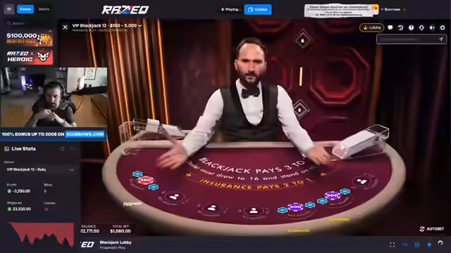 03:25:03In den letzten Minuten wird scurrows.com erneut als optimale Lösung für Casino-Spiele beworben. Besonders der exklusive Support, Bonusaktionen und der VIP-Level-Transfer von anderen Anbietern werden hervorgehoben. Kritik wird an technischen Problemen bei Sportwetten geübt, die behoben werden müssen. Der Stream endet mit der Aufforderung, die Plattform für bessere Spielerlebnisse zu nutzen.