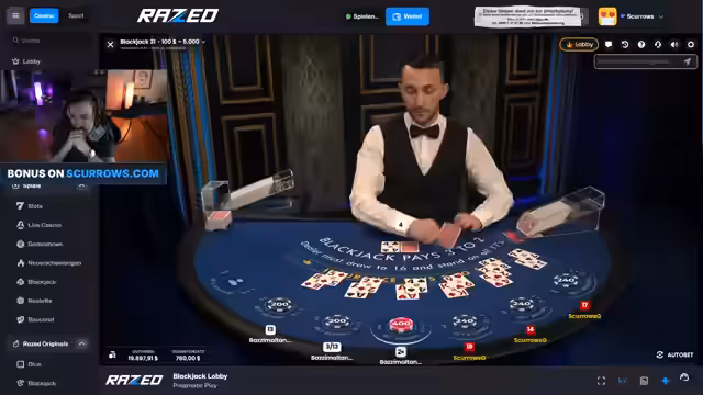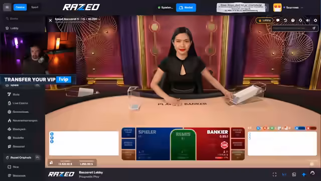 00:00:11Der Stream beginnt mit der Begrüßung der Zuschauer und der Vorstellung von Real-Batzi, der als die Nummer 1 der Casino-Streamer auf Malta gefeiert wird. Es wird angekündigt, dass Batzi seine Blackjack-Fähigkeiten live demonstrieren wird. Währenddessen werden kurz die Freispiele in einem anderen Spiel, 'James Bonanza', erwähnt, welches als Lieblingsspiel des Streamers bezeichnet wird. Es wird auf die schlechte Handyqualität während einer früheren Fahrt in einem Ferrari eingegangen, der als 'Blechbüchse' mit '0,0 Technik' beschrieben wird. Die Hoffnung, an die Erfolge des Vortages anknüpfen zu können und 'Plus zu machen', wird geäußert, da am Vortag Verluste erlitten wurden. Es wird auch über die Loyalität eines Zuschauers namens Diesel gesprochen und ein humorvoller Austausch über Sprachbarrieren findet statt.
