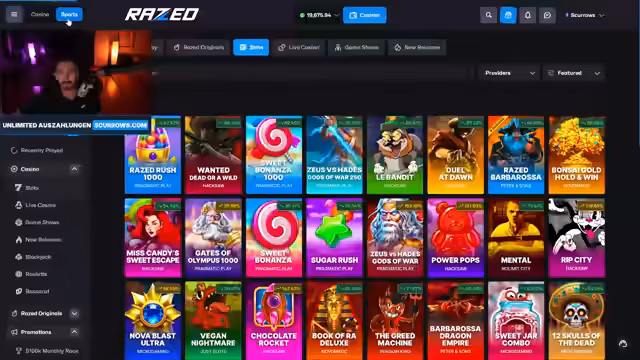 03:04:06Der Streamer macht Werbung für das Angebot von 'scurrows.com', insbesondere für ein 20.000-Dollar-Leaderboard, das jeden Monat verlost wird. Dies wird als entscheidender Vorteil gegenüber anderen Seiten dargestellt. Gleichzeitig wird das Spiel 'Gates of Olympus' gestartet, um weitere Versuche mit dem Kauf von Freispielen zu unternehmen. Die Frustration über die geringen oder nicht existierenden Auszahlungen und die fehlenden 'Fat Bombs' (hohe Gewinnsymbole) bleibt bestehen, was den gesamten Stream dominiert.