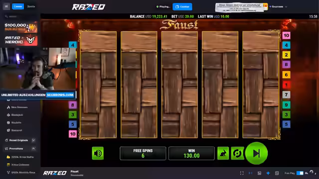 01:58:19Der Streamer wirbt für seine Website scurrows.com und erwähnt das Spiel 'Wanted Max Riener'. Anschließend diskutiert er ausführlich seine Erfahrungen mit dem Slot 'Floating Dragon', insbesondere über die Funktionsweise von Bonusspielen und Münz-Features. Es folgt eine Wette über Basketball-Ergebnisse, bei der er seine bisherigen Gewinne erwähnt und weitere Tipps ankündigt.