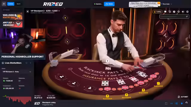 02:16:36In einer intensiven Blackjack-Session häufen sich die Verluste durch ungewöhnliche Kartenverteilungen. Theo dokumentiert mehrfach, wie die Bank trotz niedriger Ausgangskarten durch serielle Zwei-en oder Zehnen gewinnt. Besonders frustrierend ist eine Runde, bei der er vier Zweier in Folge zieht – ein für ihn einmaliges Ereignis. Die Verluste belaufen sich dabei auf über 15.000 Euro, was zu einer hitzigen Diskussion über die Natur des Glücksspiels führt.