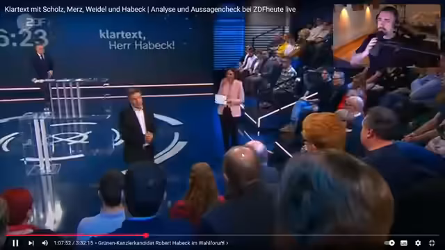 05:03:02Ein Mitarbeiter von ThyssenKrupp Stahl in Bochum, Berkant Karamann, thematisierte den Stellenabbau im Unternehmen und fragte Friedrich Merz nach Maßnahmen zur Sicherung der Zukunft der Stahlindustrie. Merz betonte die Bedeutung der Stahlindustrie für Deutschland und die Notwendigkeit, wettbewerbsfähig zu produzieren. Er wies darauf hin, dass grüner Stahl derzeit noch teurer sei als konventionell produzierter Stahl. Ein Wärmepumpenunternehmer, Jan Ossenbrink, fragte nach den Plänen von Merz zur Energiepolitik und zur Förderung von Wärmepumpen. Merz betonte Technologieoffenheit und lehnte Technologievorgaben ab. Er sprach sich für ein Klimageld aus, um die Bürger bei steigenden CO2-Preisen zu entlasten. Es wurde über das Gebäudeenergiegesetz und faktische Verbote diskutiert. Merz betonte, dass der Staat keine Technologien vorschreiben sollte. Die Notwendigkeit der Reduzierung von CO2-Emissionen wurde von beiden Seiten anerkannt.