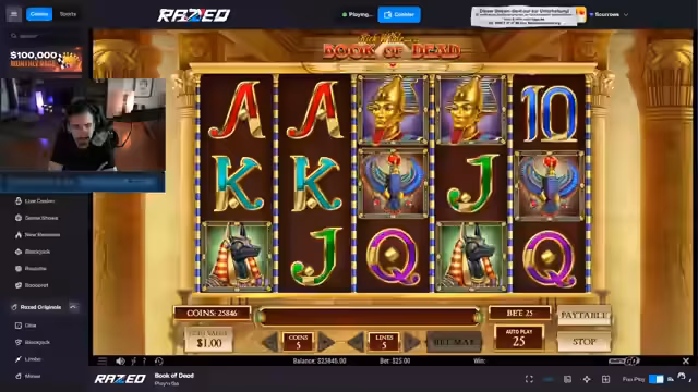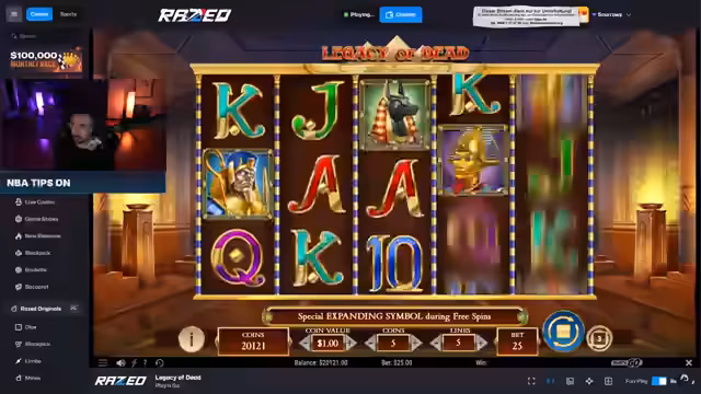 00:01:48Nach erfolgreicher Verbindung startet eine Session auf einem Slot-Spiel. Der Streamer ist zuversichtlich und freut sich über das Comeback. Er findet sofort Freispiele, ist jedoch enttäuscht, als diese nur einen minimalen Gewinn abwerfen. Er beschwert sich über das Spielverhalten und die ausbleibenden Gewinne. Die Session wird von ständigen technischen Pannen unterbrochen, was seine Laune weiter trübt. Er äußert den Wunsch, zu Blackjack zu wechseln, da die Slots ihn nur verärgern.