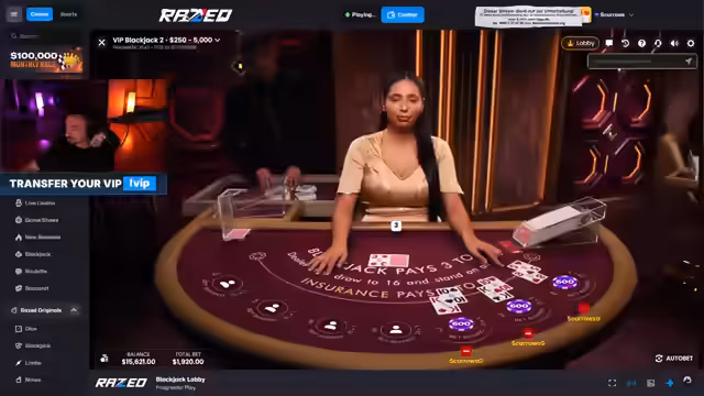 00:13:21Der Streamer wechselt zum Blackjack, um von den frustrierenden Slots Abstand zu nehmen. Er plant, hohe Einsätze zu tätigen und erwähnt einen geplanten Auscash von 10.000 Euro. Er kommentiert das Spielverhalten des Dealers kritisch und ist überzeugt, dass das Spiel manipuliert ist, besonders bei Händen, in denen die Bank gewinnt. Sein Fokus liegt darauf, das Casino durch strategisches Spiel und hohe Einsätze zu "insolvent zu machen".