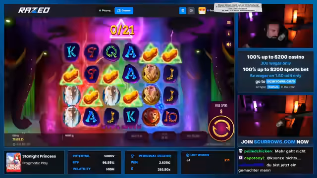03:00:22Nach anhaltenden Verlusten und Frustration im Elefantenspiel gelingt dem Streamer ein unerwarteter Super-Freispiel-Hit, der ihn und den Chat gleichermaßen überrascht und begeistert. Er hat 1000 Dollar für diese Freispiele bezahlt und ist unsicher, was genau passiert ist oder wie das Spiel normalerweise abläuft. Die Freispiele werden als 'super Freispiele' identifiziert, die einen Wert von 600x haben könnten. Trotz des großen Potenzials herrscht Verwirrung über die genaue Funktionsweise des Features, insbesondere bezüglich der benötigten Symbole wie 'Whites' und 'Erdnüsse' sowie der Bedeutung eines 'Frosches'. Die Spannung steigt, da die Möglichkeit eines 'big hits' im Raum steht, obwohl das Spielprinzip noch nicht vollständig verstanden wird.