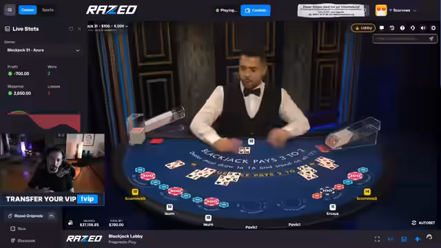 00:21:18Es wird ein Update zu Sportwetten gegeben, wobei erwähnt wird, dass drei von vier 'Skrulls-Bets' erfolgreich waren. Der Streamer betont, dass man nicht alle Spiele aus seinen Tipps übernehmen sollte, sondern eine Auswahl treffen, um die Trefferquote zu erhöhen. Die Diskussion verlagert sich dann auf Live-Casino-Erfahrungen, insbesondere Blackjack. Es wird über die Frustration beim Online-Blackjack gesprochen, da die Bank scheinbar immer die besseren Karten zieht und es schwierig ist, Gewinne zu erzielen. Es wird die Idee eines Live-Streams aus einem echten Casino, möglicherweise in Malta, in den Raum gestellt, um das Spielerlebnis zu verbessern.
